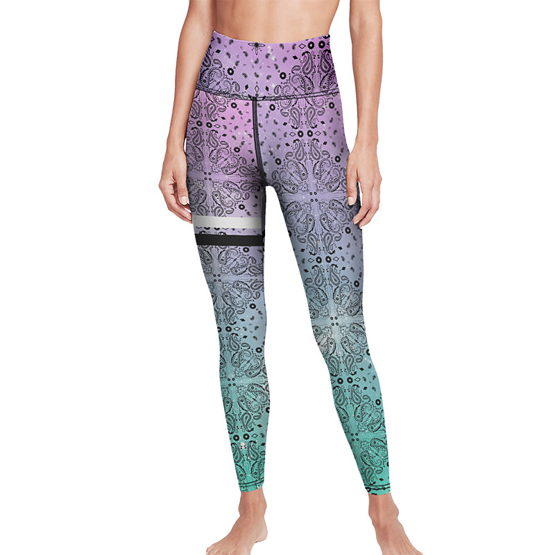 Women's Yoga Pants Butt Lift Tummy Control High Waist Gym Workout Running Fitness Cropped Leggings Paisley Black Red Dusty Blue Fall Sports Activewear High Elasticity