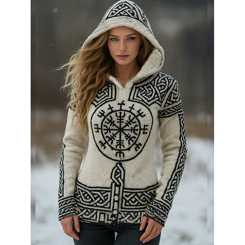 Women's Viking Vintage Fair Isle Sweater Vintage Casual Hooded Hooded Long Sleeve Regular Tops Knit Outdoor White Spring Fall