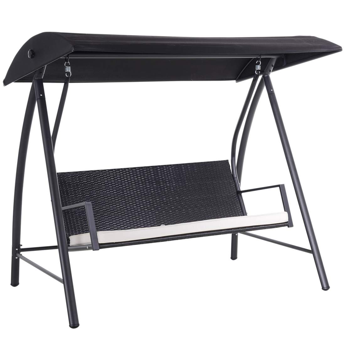 Sort 3-personers havegynge med tag i polyrattan