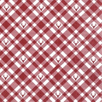 Home Fashion®, Plaid with Deers red, Lunch-Servietten aufgefaltetes Maß 33 cm x 33 cm, im Viertelfalz, 20 Stück pro Pack