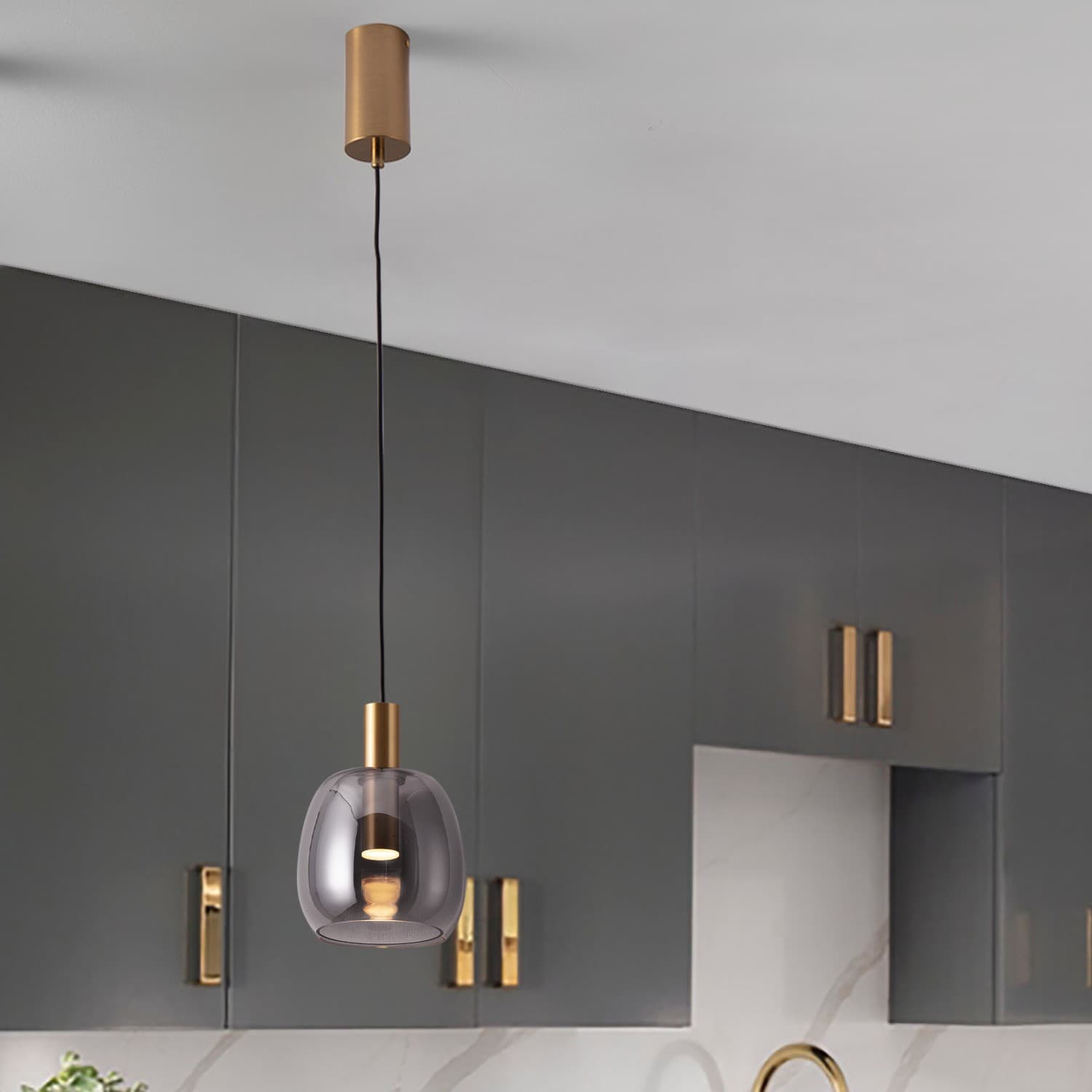 Nova Luce Imatia - hanglamp - Ø 16 x 215 cm - 7W LED incl. - messing goud en rokerig glas