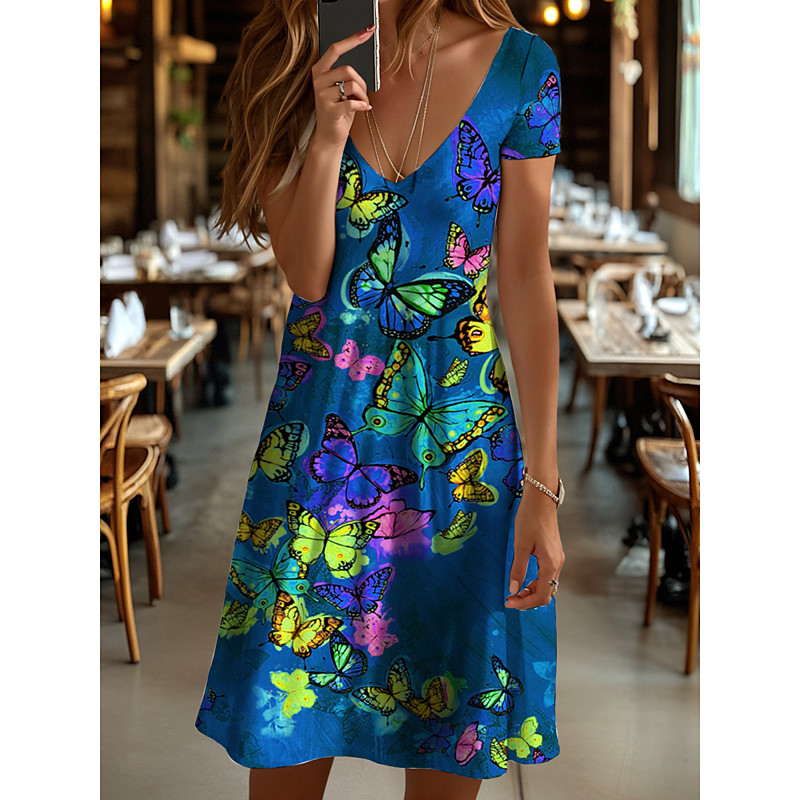 Women's Mini Dress Sundress A Line Dress Summer Dress Stylish Casual Work Street Regular Fit Graphic Geometric Abstract 3/4 Length Sleeve V Neck Red Blue Purple Orange Spring Fall