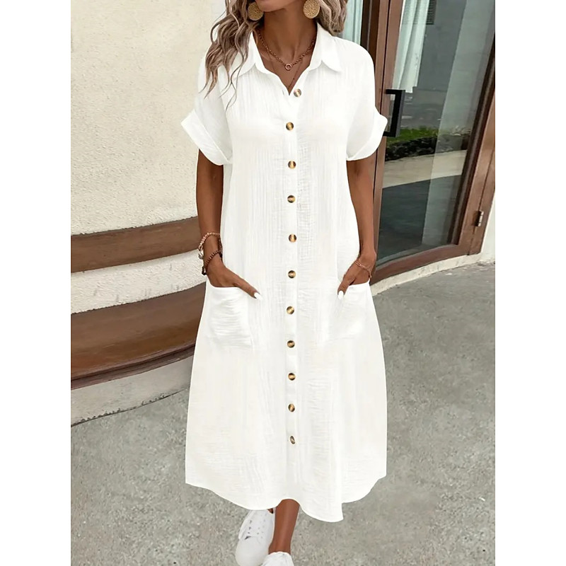 Women's Midi Dress Shift Dress Vacation Casual Daily Regular Fit Plain Short Sleeve Shirt Collar Black White Blue Summer Spring