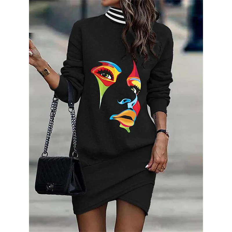 Women's Mini Dress T Shirt Dress Tee Dress A Line Dress Vacation Casual Daily Date Regular Fit Ombre Graphic Abstract Long Sleeve Crew Neck Blue Black Green Spring Fall Winter Autumn