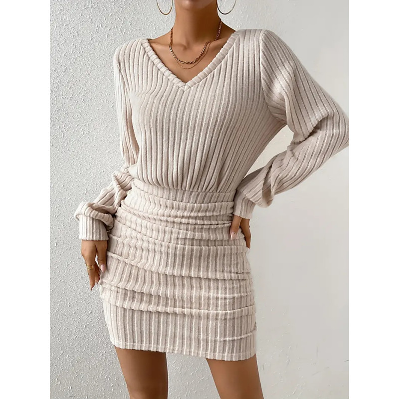 Women's Mini Dress Sheath Dress Casual Daily Regular Fit Plain Long Sleeve V Neck Black Apricot Spring Fall Winter