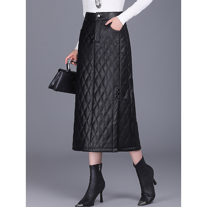 Women's Skirt A Line Fashion Casual Midi High Waist Skirts Plain Pocket Micro-elastic Street Daily Black Spring Faux Leather