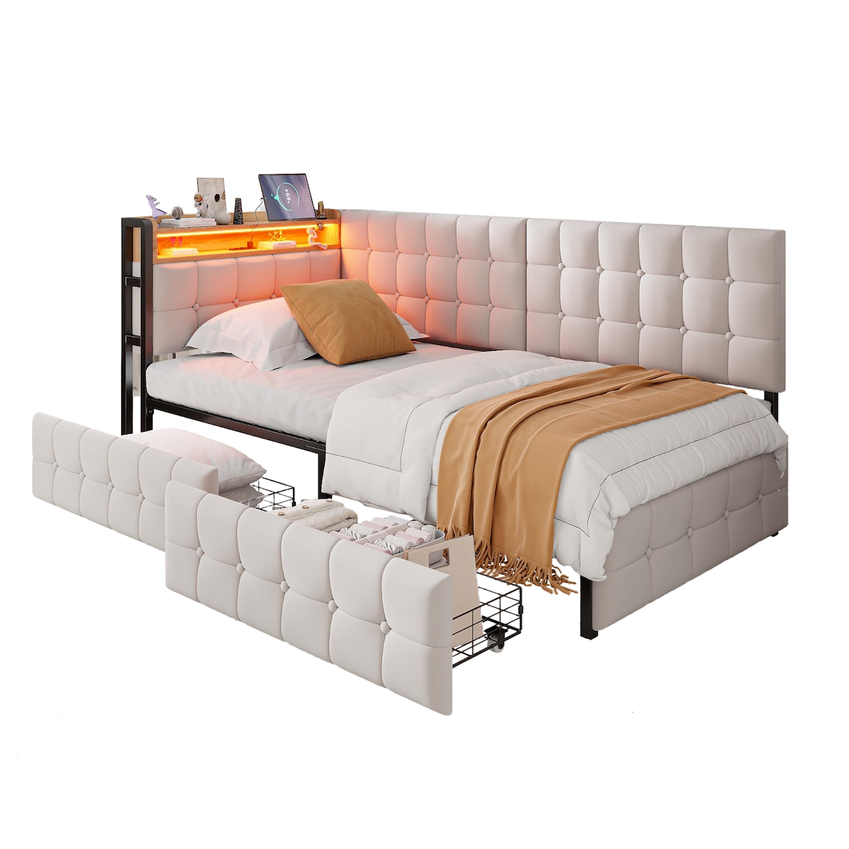 OKWISH Multifunktionales Schlafsofa 90x200 cm mit Stauraum, LED-Beleuchtung, USB-Anschluss, umwandelbar, robust, modern für kleine Apartments Beige