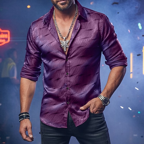 Per uomo Camicia Camicia casual Camicia con Bottoni Camicia da Ballo Nero Vino Viola Oro Manica Lunga Semplice Testurizzato Bavero Feste Quotidiano Jacquard Abbigliamento Moda Elegante casual