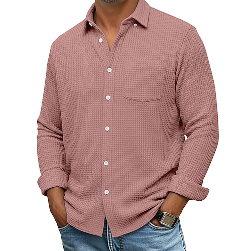 Per uomo Camicia Camicia a nido d'ape Camicia casual Camicia con colletto alla coreana Camicia con Bottoni Blu Rosa Vino Blu marino Verde Manica Lunga Semplice Testurizzato Collo alla coreana Casuale