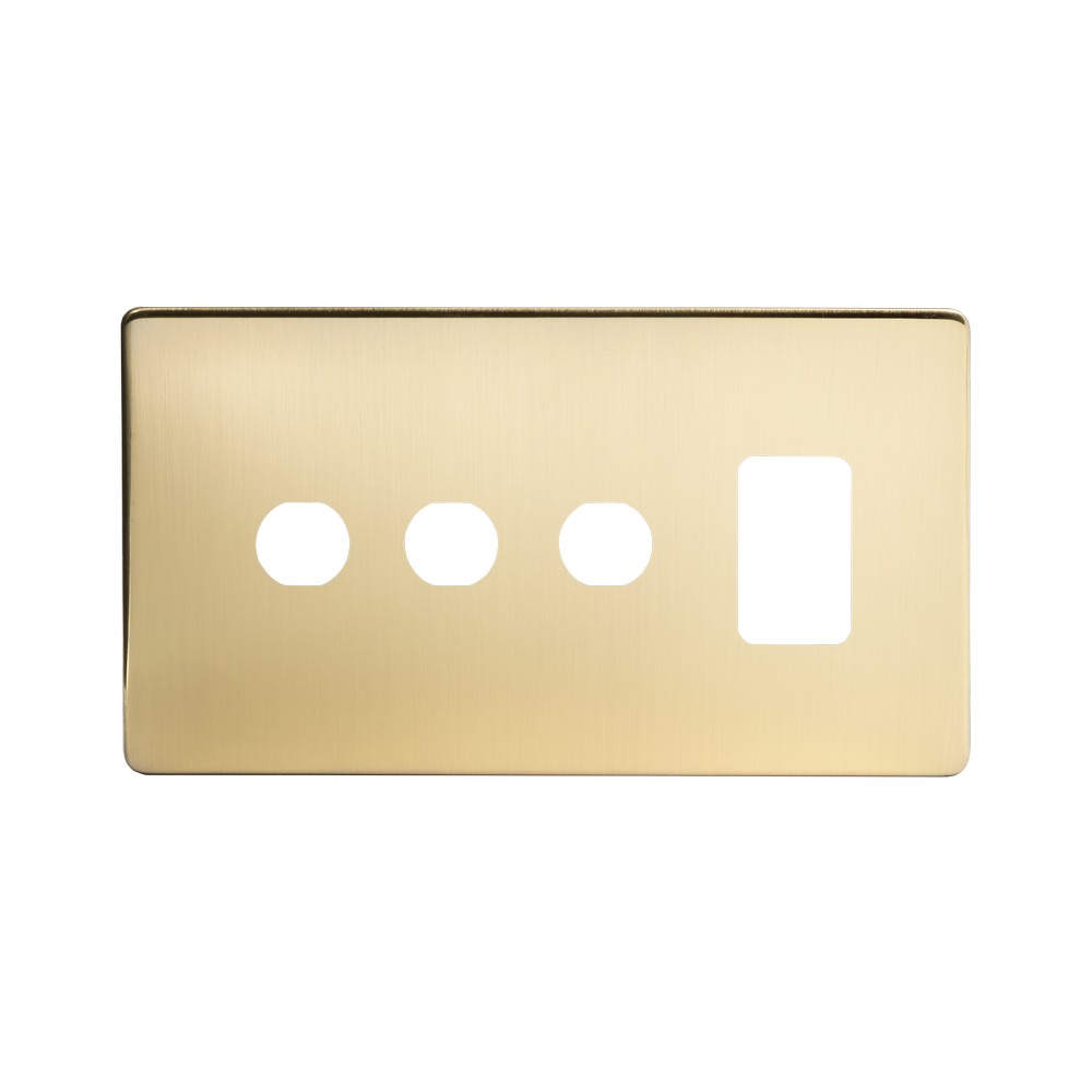Soho Lighting Brushed Brass 4 Gang 1RM+3CM Dual Module Grid Switch Plate