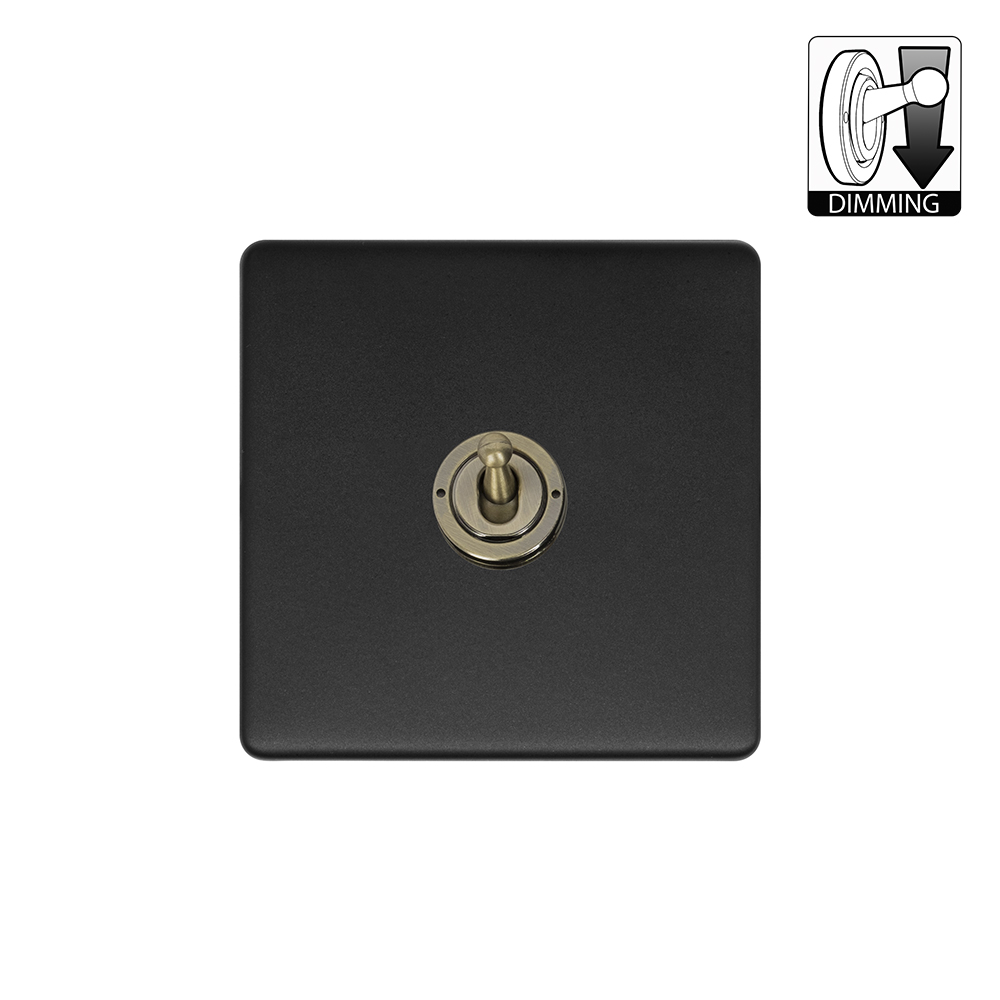 Soho Lighting Lighting Matt Black & Antique Brass 1 Gang Dimming Toggle Switch