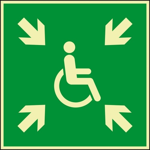 Schild I PERMALIGHT power langnachleuchtend Rettungszeichen Vorläufige Evakuierungsstelle, Aluminium, 400x400mm, ASR ISO 7010