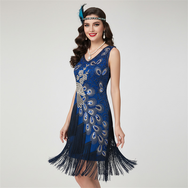 Roaring 20s 1920s Cocktail Dress Floor Length Knee Length Dress Outfits Prom Dresses Short Sleeves The Great Gatsby Charleston Wedding Guest Sequins Tassel Fringe Feather V Neck Fancy Dress Women's