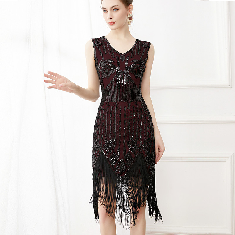 Roaring 20s 1920s Knee Length Flapper Dress Sleeveless The Great Gatsby Sequins Fringe Sheath / Column V Neck Fancy Dress Women's Christmas Carnival Masquerade Retro Theme Party Charleston Dance