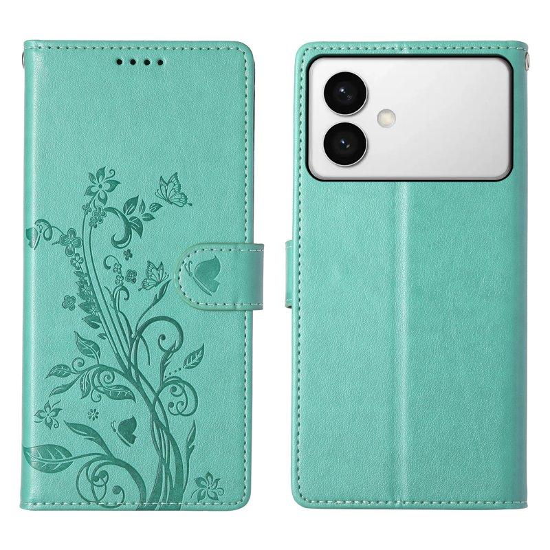 Samsung Galaxy S26 Edge Plånboksfodral Konstläder Blomtryck - Grön