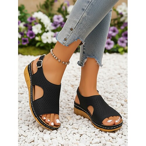 Per donna Sandali Sandali con la zeppa Taglie forti Sandali a piedi nudi Esterno Ufficio Giornaliero Color Block Tinta unita Estate Fibbia Zeppa Punta tonda Punta chiusa Classico Informale Footing