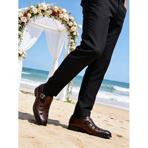 sandali da uomo in vera pelle: comodi sandali marroni slip-on per matrimoni estivi ed eventi in spiaggia