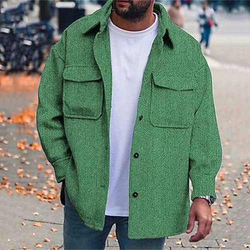 Per uomo Giacca Leggera Giacca Casual Giacca da Lavoro Casuale Quotidiano Tasca Bottonato Primavera Autunno Semplice Spina di Pesce Streetwear Elegante Collo ripiegato Regolare Blu Nero Marrone Verde