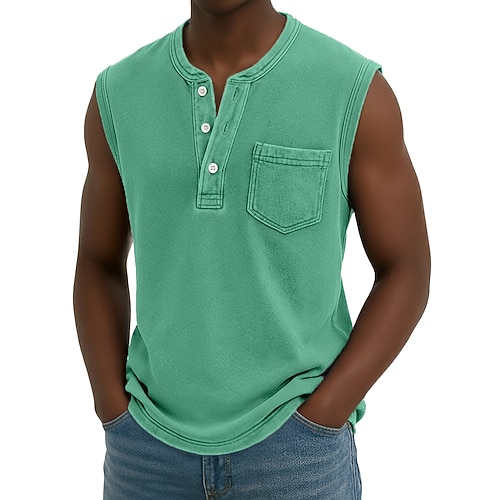 Herren Tank Top Weste Ärmelloses Shirt Ärmellos Henley Sommer Frühling Einfach Mode Designer Basic Tasche Vintage-Stil Knöpfe Urlaub Straße Alltagstauglich Schwarz Hellgrün Rosa Top T-Shirt für Herren