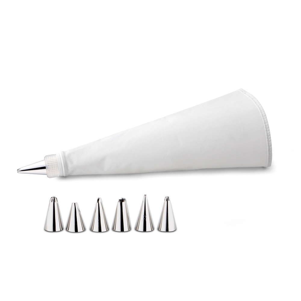 TABLE PASSION Weis 15156 Spritzbeutel Set mit 6 Edelstahl Spritztüllen Volumen 500ml