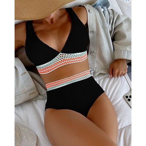 Per donna Tankini Costume da bagno a due pezzi Scollo a V Costume da Bagno Costumi da bagno Nero Bianco Asciugatura Rapida Leggero Traspirante Senza Maniche - Surf Spiaggia Nuoto Estate Primavera