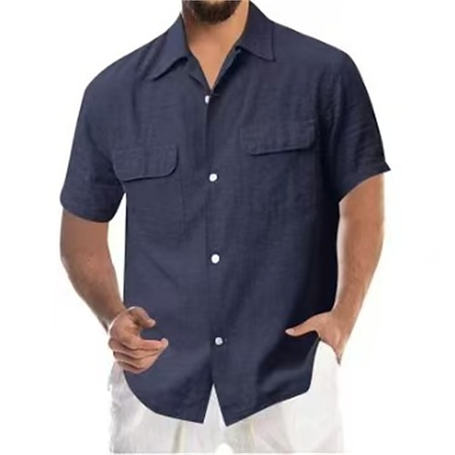 Per uomo camicia di lino Camicia estiva Abbigliamento mare Camicia con bottoni Tinta unica Da mare Curise Nero Bianco Verde chiaro Rosa Manica corta Collo ripiegabile Estate Abbigliamento Bottone giù