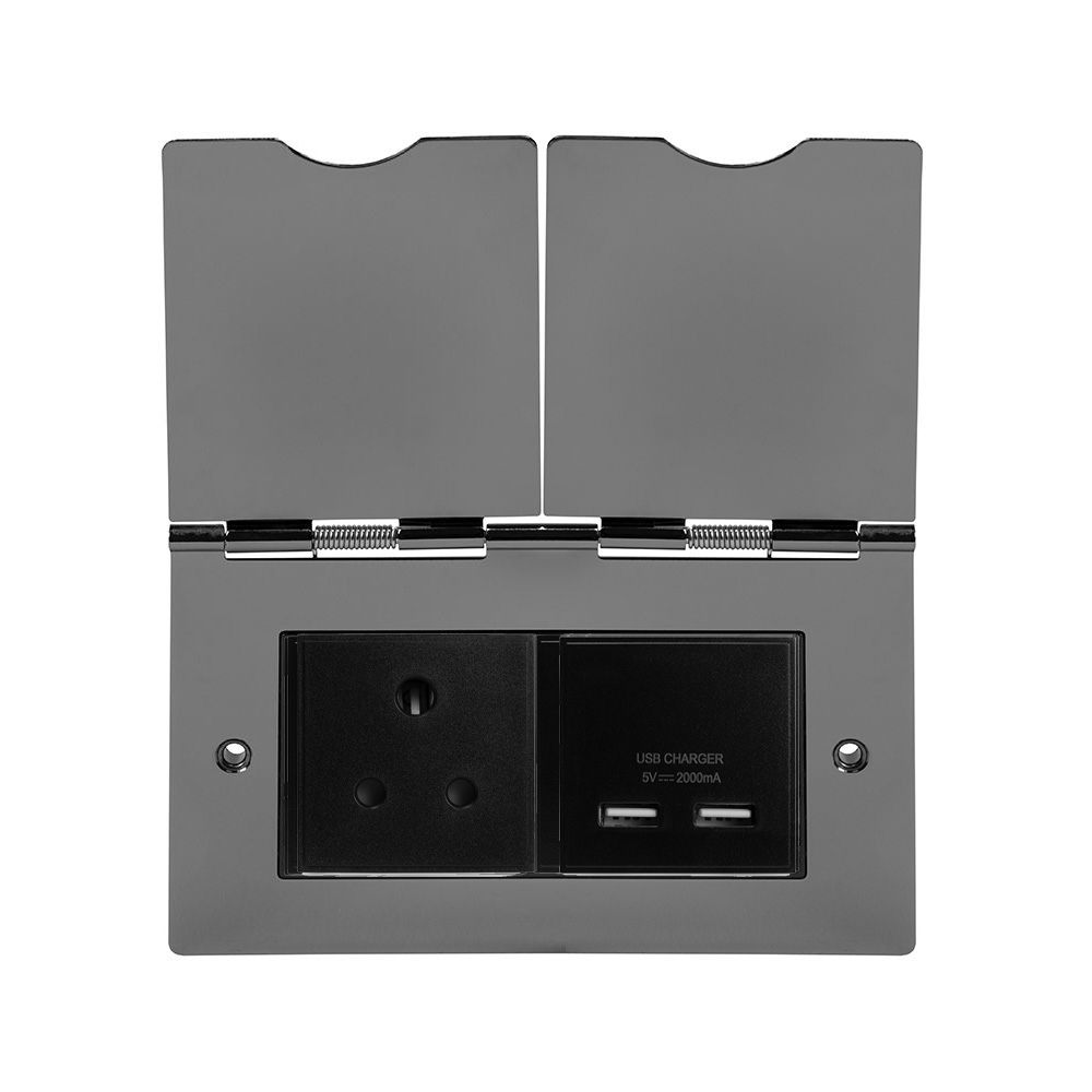 Soho Lighting Black Nickel Screwless Double Floor Outlet 5Amp Socket & USB Charger - Size: H 86mm X W 86mm