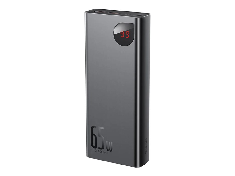 Baseus Adaman - Powerbank - 20000 mAh - 65 Watt - 3 A - QC 4.0+, PD 3.0 - 3 output-stikforbindelser (2 x USB, USB-C) - på kabel: USB-C - sort