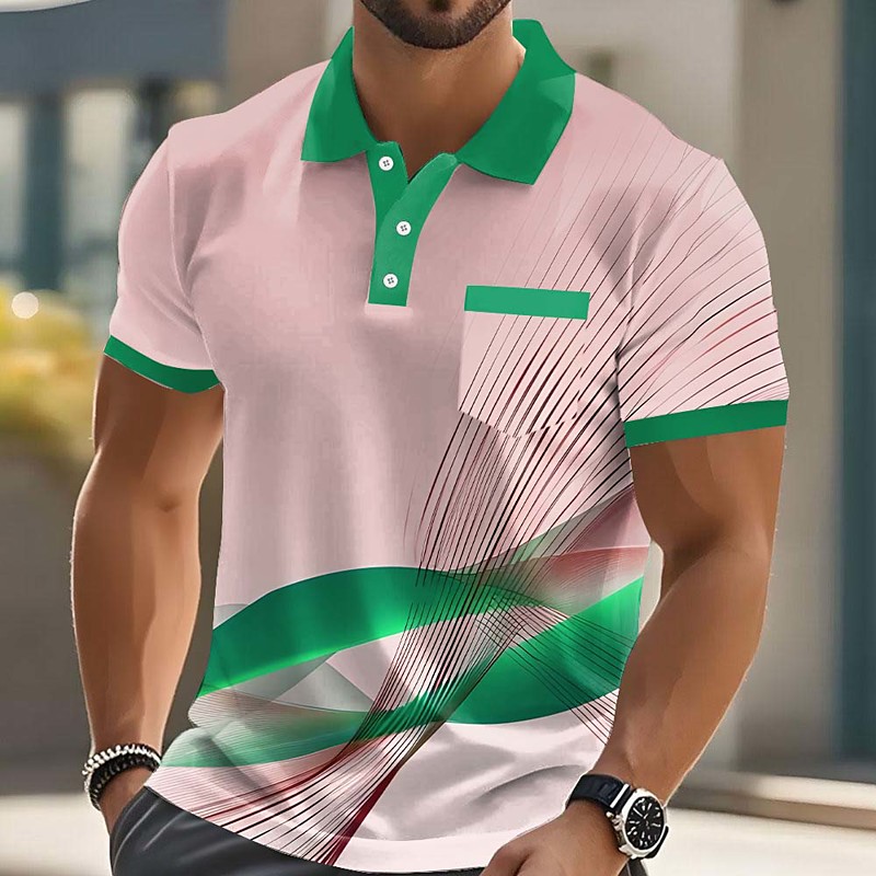 Men's Geometic Line Polo Short Sleeve Polo Shirts Collared Shirts Casual Business Casual School Outdoor Sports Daily Wear 3D Print Summer Black Red Blue