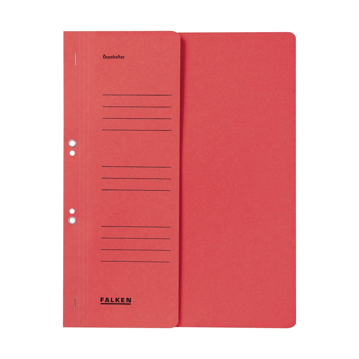 Falken 80003841 50x Ösenhefter für DIN A4, 250g/m2 Manila-RC-Krt., 1/2 Vorderd., Behördenheftung - Rot