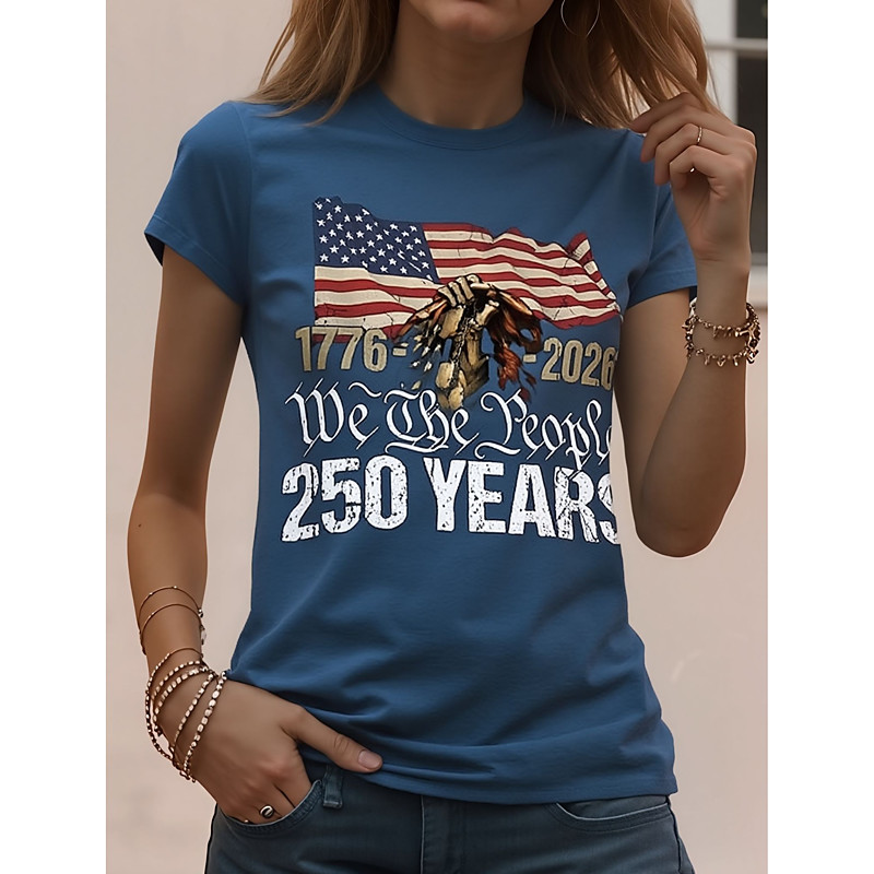 American 250th Women's T Shirt Graphic Independence Day Letter Vintage Stylish Classic Short Sleeve Crew Neck Round Neck Regular Tops Daily Weekend Print Blue Summer Spring Fall