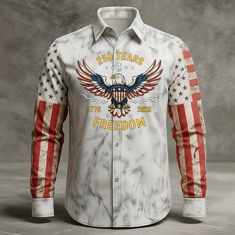 Men's Eagle US Flag America's 250th Anniversary Shirt Button Up Shirt Long Sleeve Vintage Retro Holiday Casual Daily Spring Fall Turndown 3D Print Linen Like Shirt White Red Dark Blue