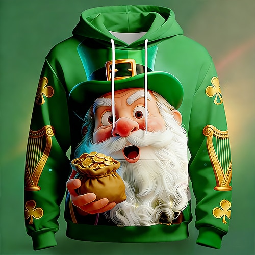Giorno di San Patrizio Per uomo Trifoglio folletto Felpa con Cappuccio Felpa Moda Cool 3D Girocollo Casa Abbigliamento casual alla moda Feste Verde Coulisse Autunno Inverno progettista S M L XL XXL