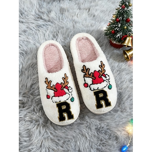 comode pantofole natalizie da donna con design a renna: morbide pantofole con 26 lettere tra cui scegliere, a tema natalizio, perfette per rilassarsi e come regalo