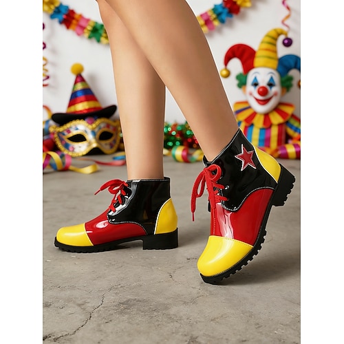 stivaletti da donna in vernice rossa con stampa a picche – stivaletti bassi a tema carte da gioco per costumi di carnevale, cosplay da clown e Halloween
