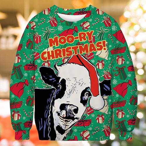 Natale Babbo Natale Gatto Cane Felpa Pullover Felpa divertente di Natale Stampa 3D Divertente Per Da coppia Per uomo Per donna Per adulto Natale Carnevale Capodanno Stampa 3D Feste Casual / quotidiano