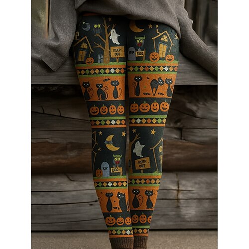 Per donna Leggings Vacanza Vintage Stile Etnico Lunghezza intera Vita AltaPantsHalloween Grafico Animale Gatto Stampa 3D Asciugatura Rapida Traspirabilità Morbido Elasticizzato All'aperto Casa Casual