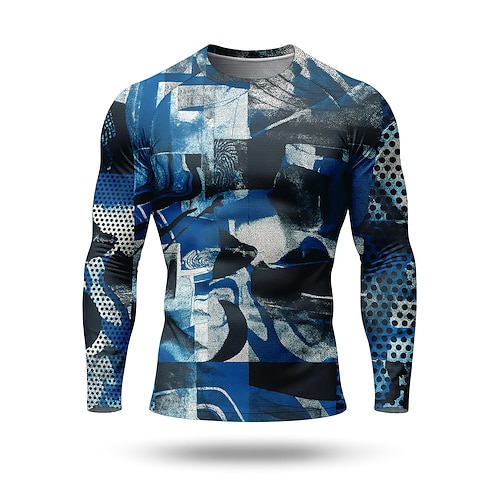 Per uomo Maglia a compressione Maglia da corsa Stampa 3D Manica Lunga Livello Base Geometrico Asciugatura Rapida Compressione Elasticizzato Traspirante Allenamento in Palestra Allenamento attivo