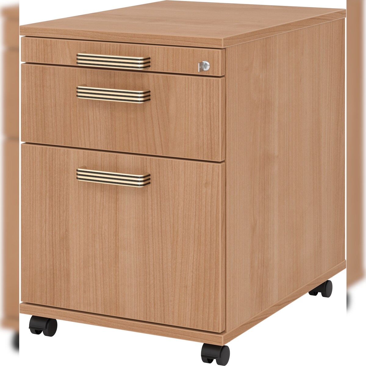 bümö Rollcontainer mit Hängeregistratur, Container abschließbar aus Holz in Buche - Rollwagen für's Büro mit Hängeregister als Schreibtisch