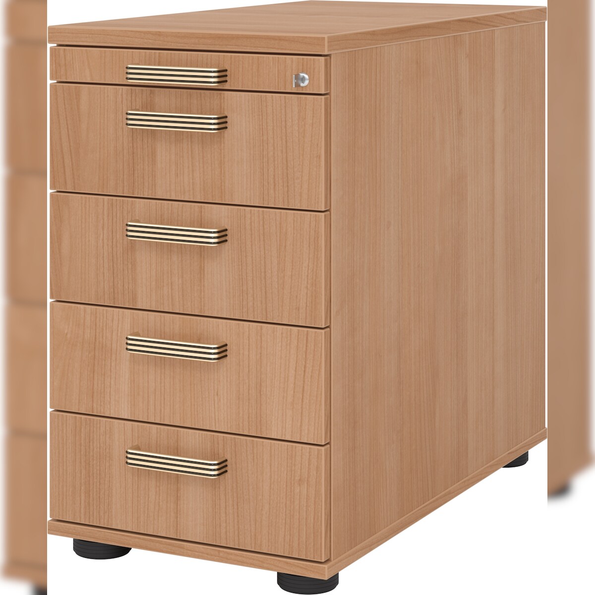 bümö Schreibtisch Schrank abschließbar, Schubladenschrank Holz in Nussbaum, Container mit Schubladen - Schubladen Schrank Büro, Schreibtisch