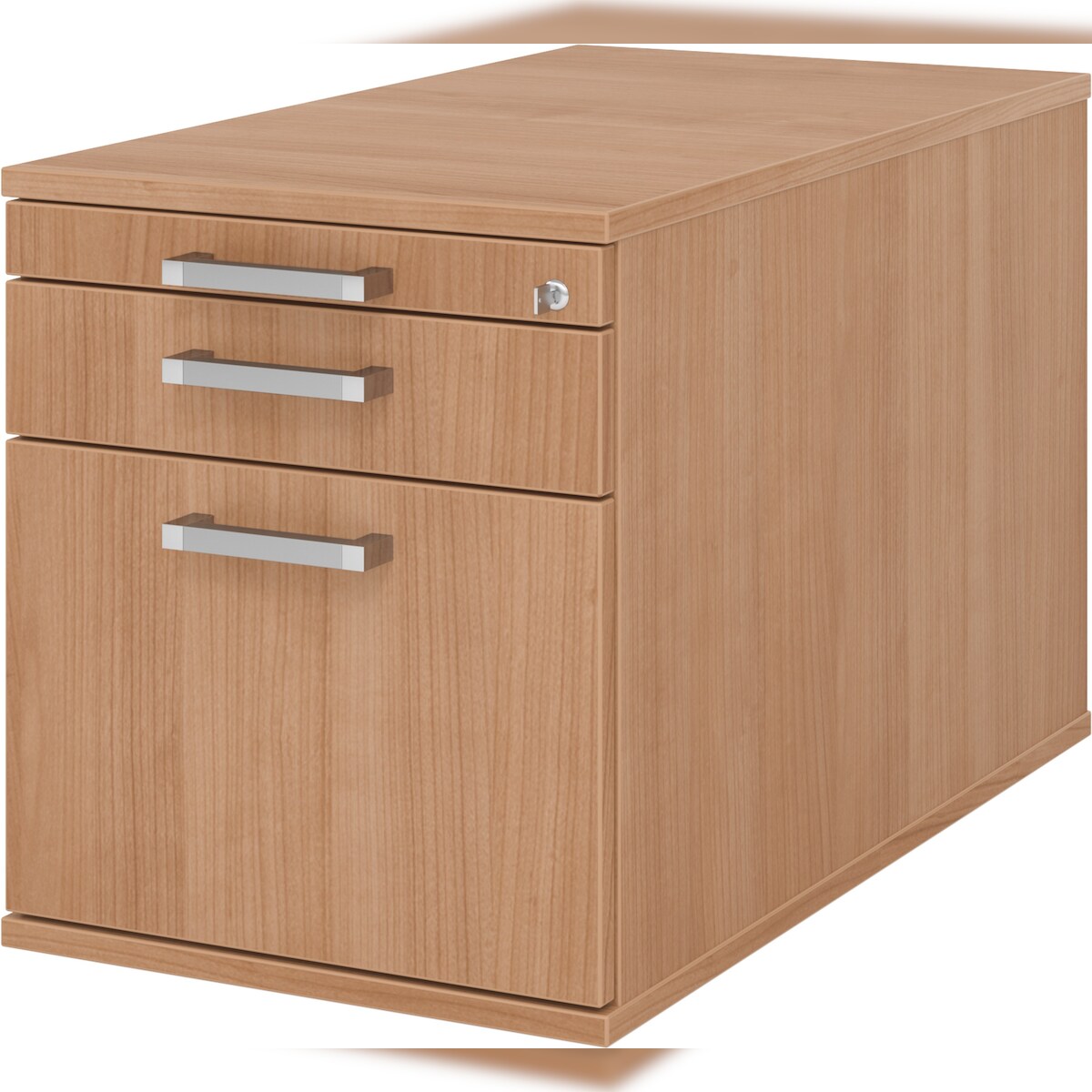 bümö Rollcontainer mit Hängeregister für Hängeordner, Container abschließbar in Nussbaum - Rollwagen mit Hängeregistratur als Schreibtisch