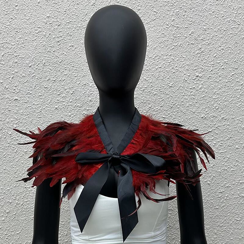 Carnival 2026Rio Carnival Samba Accessories Women's Black Feather Cape Shawl with Satin Ribbon Tie Brazil Festival Performance Costume
