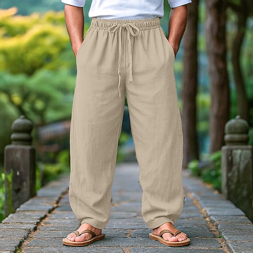 Per uomo Pantaloni di Lino Pantaloni Pantaloni Estivi Pantaloni da Spiaggia Coulisse Tasca Design con Coulisse Elastica Semplice Leggero Traspirante Lunghezza intera Yoga Palestra Moda Streetwear