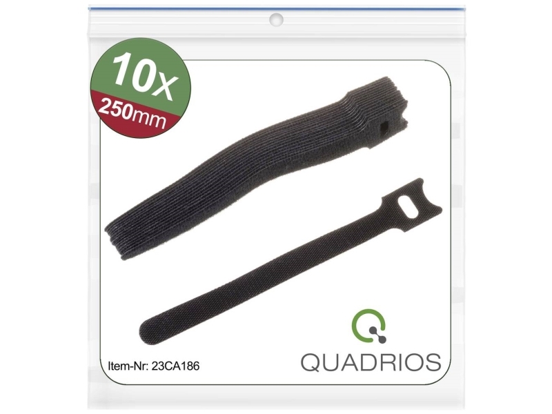 Quadrios 23CA186 Burrebåndkabelbinder til samling Burrebånd statisk loop del (L x B) 250 mm x 12 mm Sort 10 stk