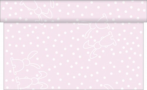 Sovie HOME Tischläufer Rabbits in Rosa aus Linclass® Airlaid 40 cm x 4,80 m, 1 Stück - Ostern Punkte Hase