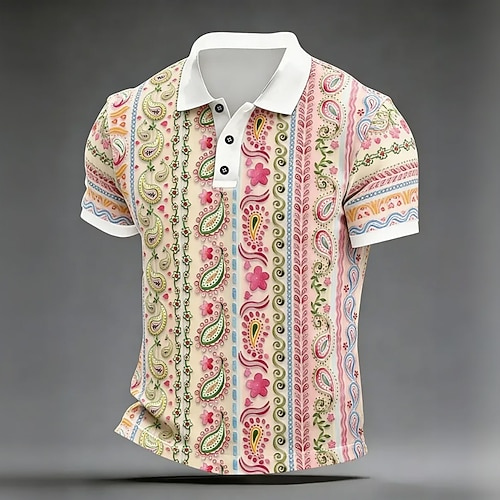 Per uomo Paisley Polo Manica Corta Magliette polo Camicie con Colletto Casual Athleisure Abbigliamento da Esterno Abbigliamento quotidiano Stampa 3D Bottoni Primavera Estate Blu Viola Verde