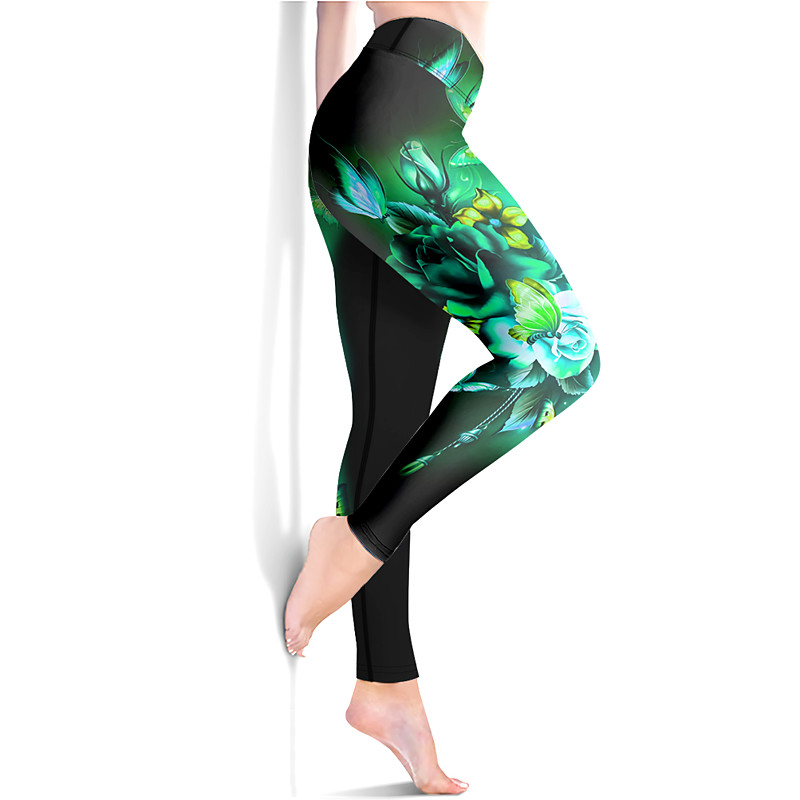 Women's Sports Gym Leggings Yoga Pants High Waist Spandex Green Purple Red Cropped Leggings Floral Tummy Control Butt Lift Clothing Clothes Yoga Fitness Gym Workout Running / High Elasticity