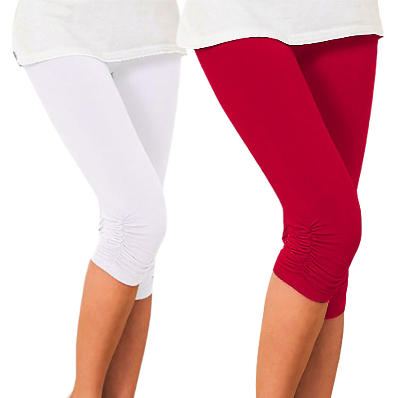 2 Pack Women's Capri Leggings Workout Pants High Waist Bottoms Tummy Control Butt Lift Violet White Black Yoga Fitness Gym Workout Sports Activewear High Elasticity Athletic Athleisure Wear