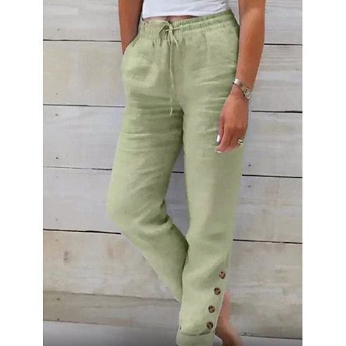 Per donna Pantaloncini in cotone e lino Pantaloni ispirati al lino Pantaloni in cotone e lino Moda Streetwear Essenziale Lunghezza intera Vita media Semplice Tasca Coulisse Comodità All'aperto