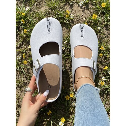Damen-Mules im Mary-Jane-Stil in Kamelhaar mit Leopardenmuster an der Spitze, Schnallendetail, offene Fersenpartie für den ganzen Tag